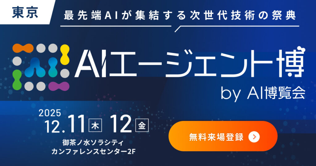 AIポータルメディア「AIsmiley」を運営する株式会社アイスマイリーは、2025年12月11日(木)・12日(金)に「AIエージェント博 by AI博覧会」を開催します!
