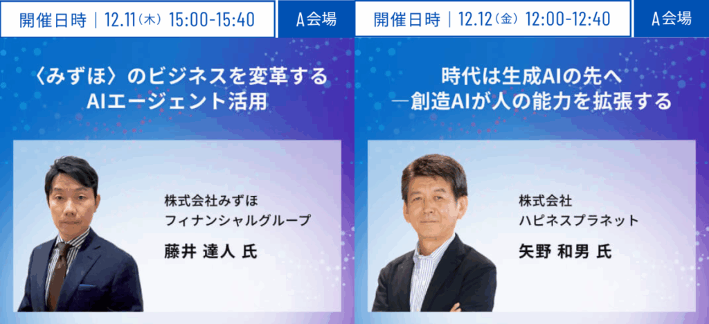 生成AIの次に来る実装フェーズを、業界リーダーや専門家の講演から最短でキャッチアップできます。
