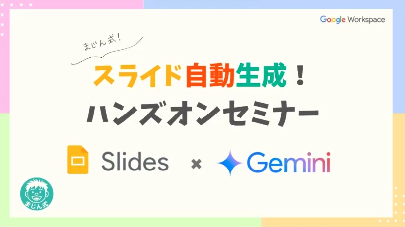 まじん氏は、自身が考案した「まじん式プロンプト」の最新バージョンV3を中心に、Googleスライドを自動生成する具体的な方法が紹介されました。誰でも無料のGoogleアカウントさえあれば利用できるシンプルな仕組みを解説。プロンプトを設定し、アプリスクリプトにコードをコピペするだけで環境構築が可能であり、スライドは数十秒で生成されると実演しました。また、スピーカーノートの自動生成や、デザイン・背景・ロゴ設定などの高度なカスタマイズも披露。さらに、生成したスライドを動画化し、AIナレーションを付与する応用テクニックまで解説し、参加者を驚かせました。美術系出身からAI人材へとキャリアを転換した自身の経験も交えつつ、「今からでもAIを学ぶのは遅くない」と強調。実践的で即効性のあるノウハウが詰まったセッションは、多くの参加者に強い印象を残しました。