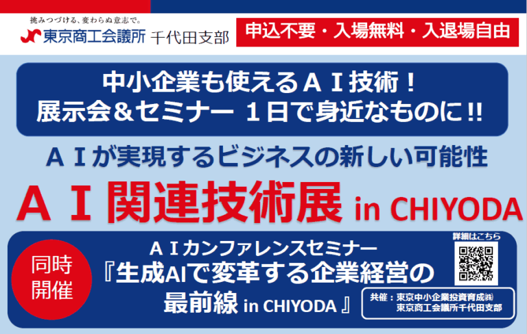 12/3(水) 開催:「AI関連技術展 in CHIYODA」+セミナー「生成AIで変革する企業経営の最前線 in CHIYODA」(主催・共催:東京中小企業投資育成、東京商工会議所 千代田支部)