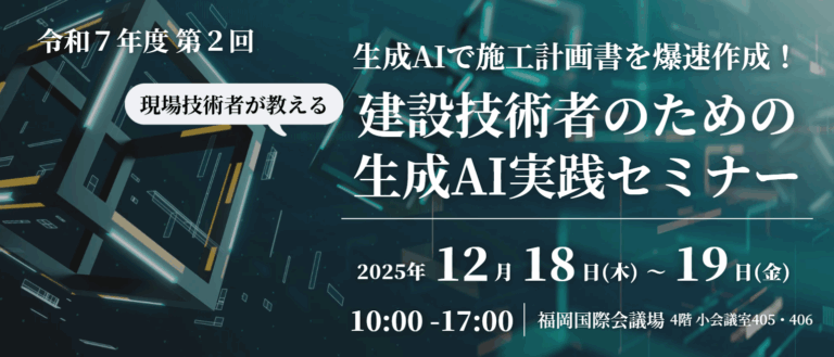 12/18~19 開催:建設技術者の生成AI実践セミナー(GAIS共催)第二回を九州で開催!